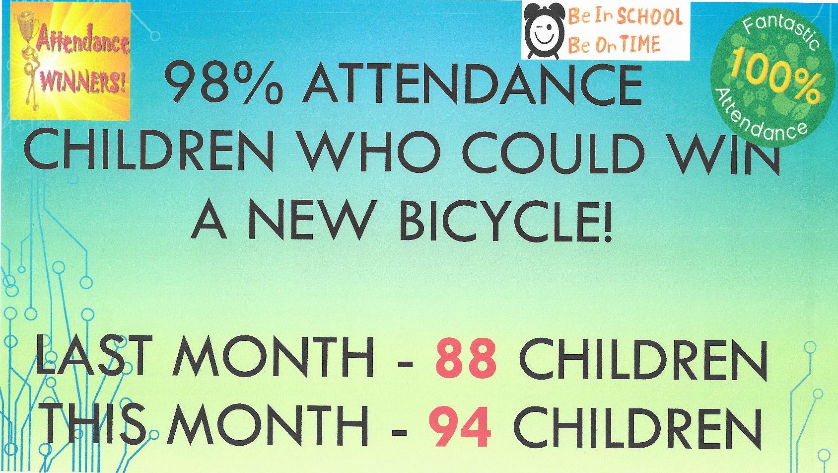 Children that maintain this standard of attendance will be entered in our prize draw at the end of the year and could win a bicycle!