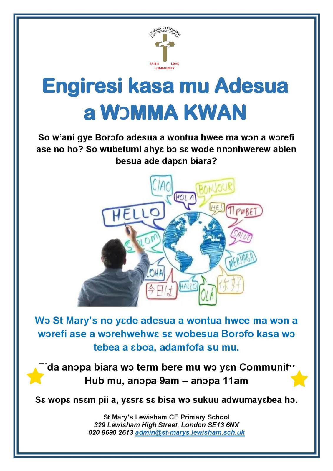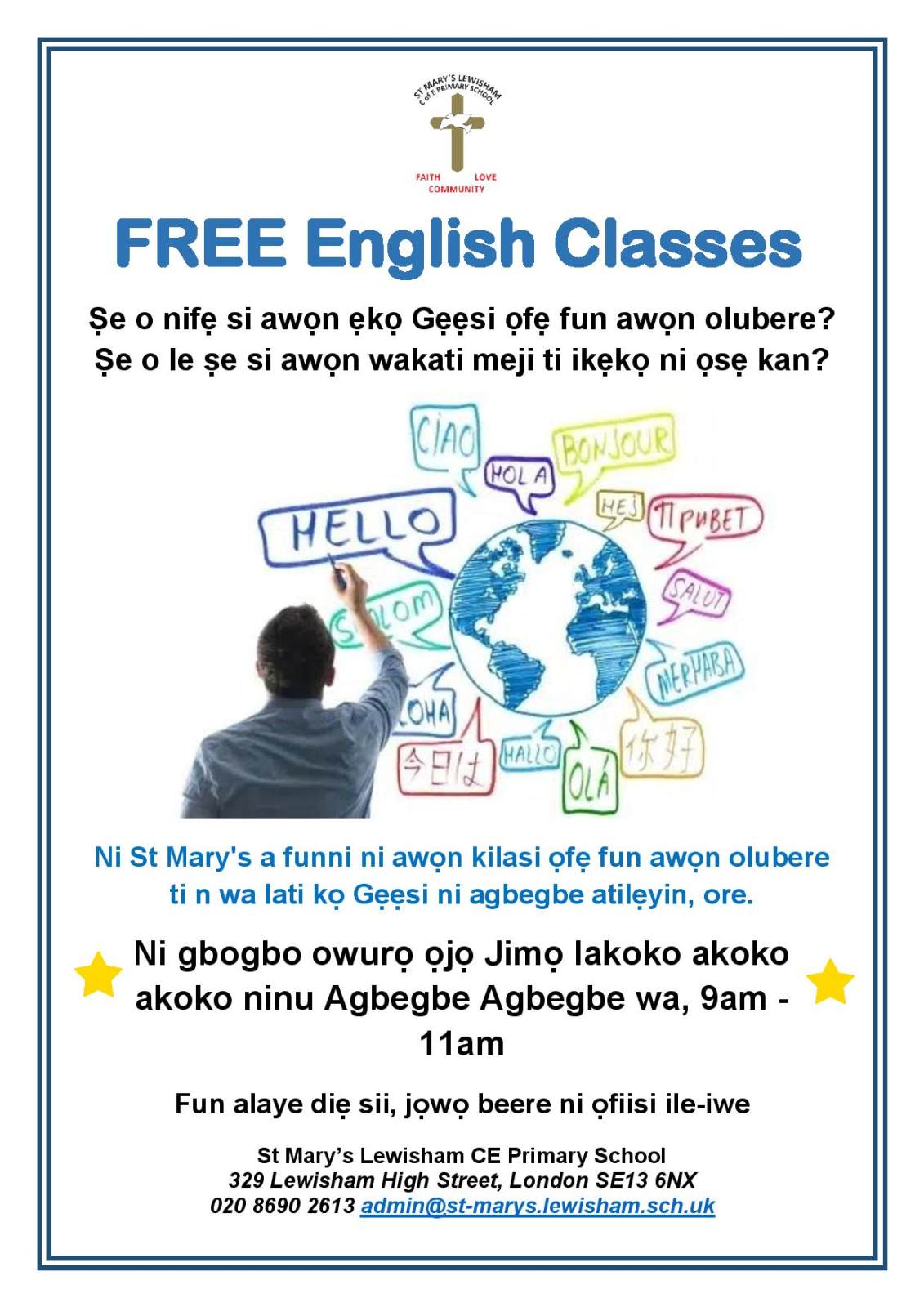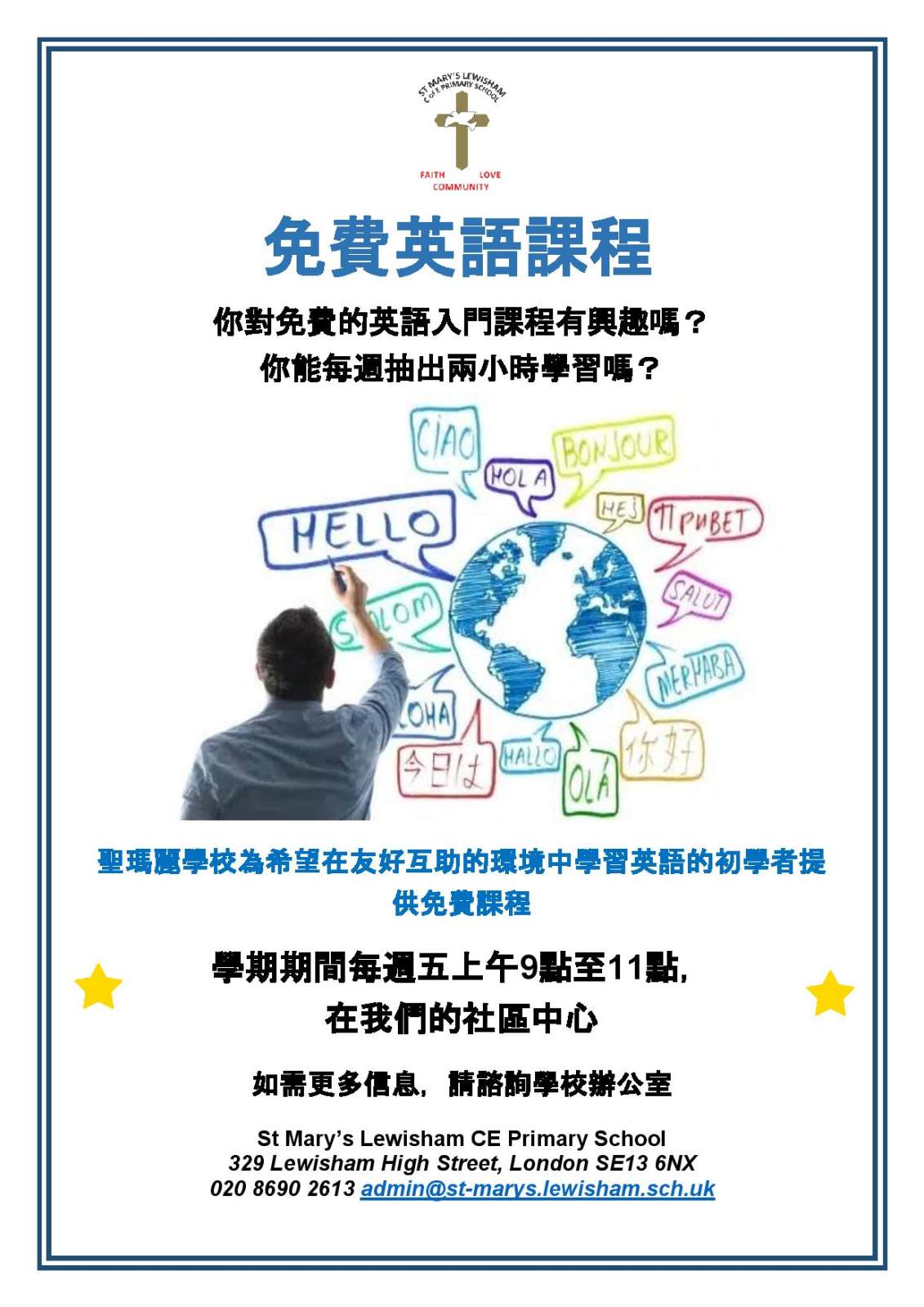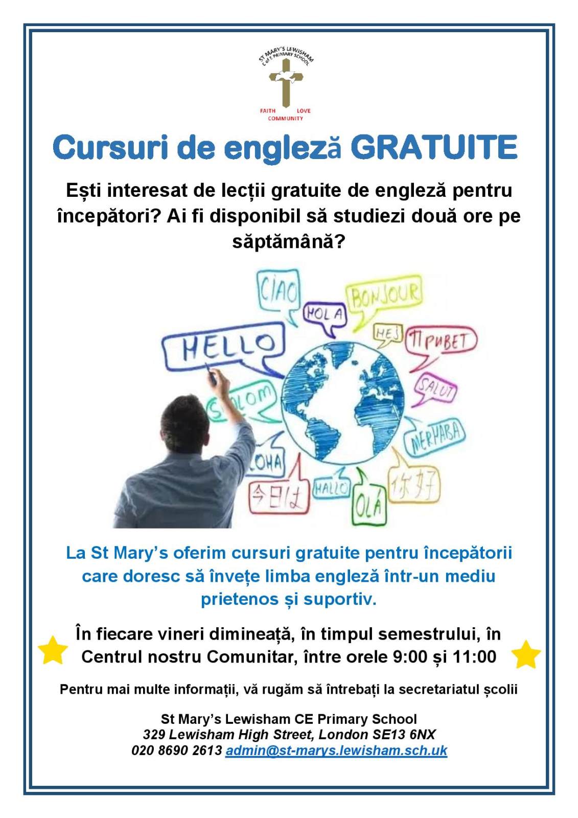 We have obtained funding to deliver FREE English classes on Friday mornings during term time. Classes are delivered by a qualified instructor and are open to anyone who needs support to improve their English - this includes parents and carers as well as members of the local community.