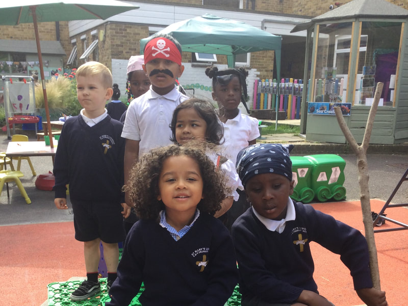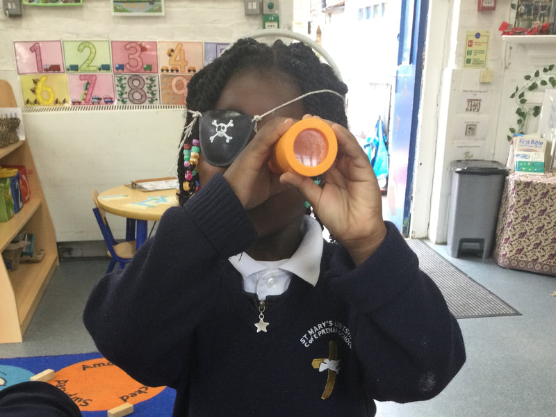 Nursery have been discovering what exactly pirates do, as well as learning some pirate talk like 'Ooaar me hearties' and 'Yo ho ho'. They have gone on adventures in their pirate ship and have been looking for buried treasure.