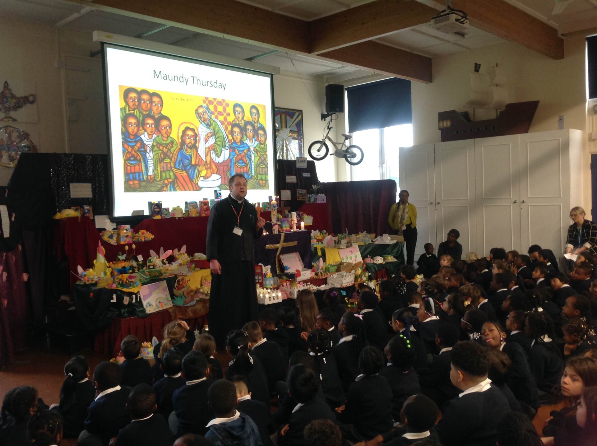 Children, Parents, Governors and Staff were led in Worship by Father David as we reflected on Holy Week and the resurrection of Jesus Christ. Children shared Bible readings and prayers, with Father David leading us in prayer and reflection as we journeyed together from Palm Sunday, through Maundy Thursday and Good Friday, ending on Easter Sunday.