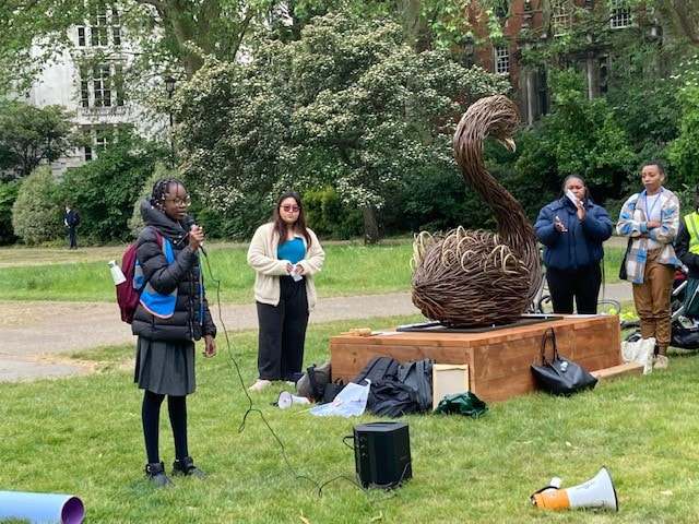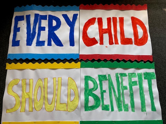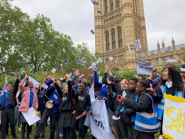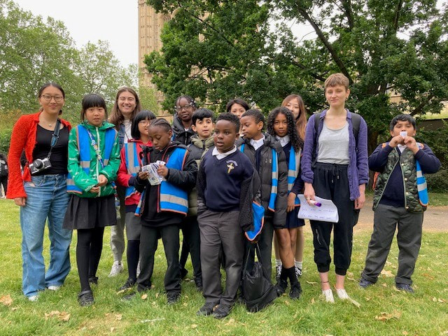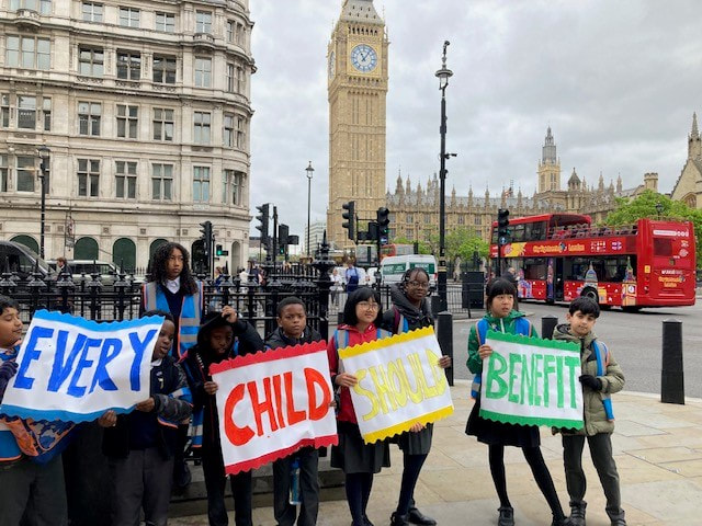 Year 5 students followed up on workshops with students from UCL to attend an action outside Westminster to demand that every child should receive child benefit regardless of their parents' immigration status. Currently, children whose parents have no recourse to public funds are not entitled to child benefit (which helps pay for uniform, food, school trips) and this means that they are £1,248 worse off each year.