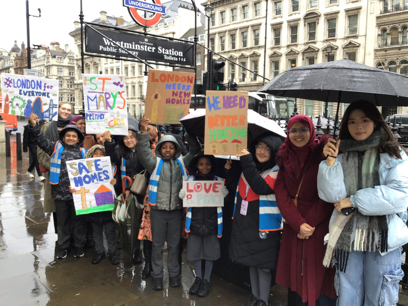 St Mary's were proud to be represented at this special event where our children and parents, working in partnership with Lewisham Citizens, were given the opportunity to question Sadiq Khan in front of 2,000 people and secure pledges for future policy. Prior to the event, the children created banners with the UCL students to ensure that our messages for change were shared with many people in Central London. Mrs Graham gave a powerful speech, highlighting the impact of our previous campaigning to secure better housing and financial support for some of the most vulnerable in our communities.