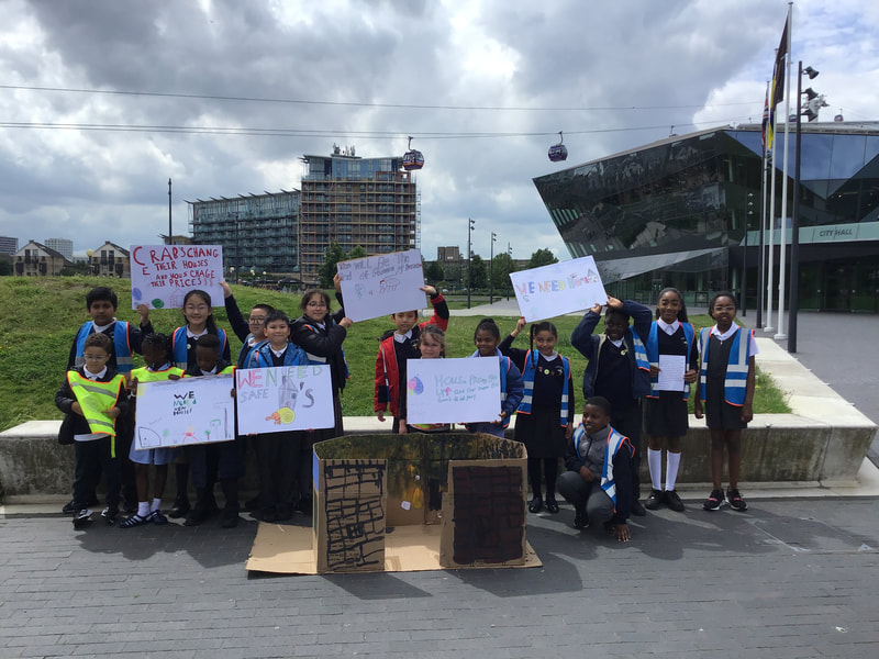 Our School Councillors and children from our Year 5 class who have been working with UCL students on our Housing Campaign travelled to City Hall in East London to join other schools and Citizens UK campaigners. We met with the Deputy Mayor for Housing - Tom Copley - and shared real stories and made demands for change, so that everyone has access to clean and safe housing.