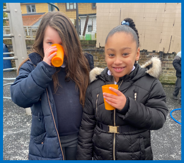 During the cold weather, our Young Leaders have been serving hot drinks in the playground at lunchtime. The children have enjoyed warming Hot Chocolate and Fruit Tea!